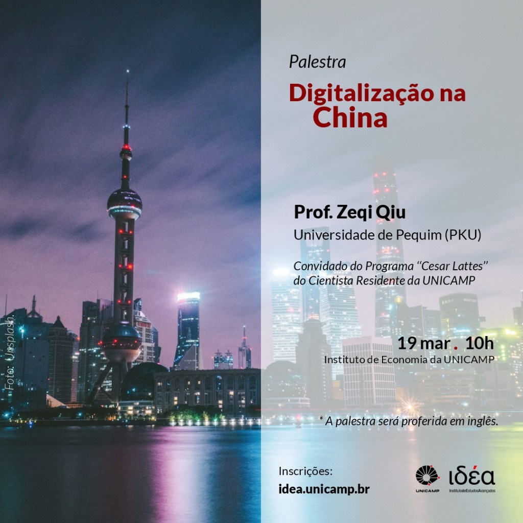 O renomado sociólogo Zeqi Qiu, professor titular da Universidade de Pequim (PKU) e cientista residente na UNICAMP pelo Programa “César Lattes”, ministrará uma palestra especial sobre “Digitalização na China”. O evento ocorrerá no dia 19 de março de 2025, às 10h, no Instituto de Economia da UNICAMP.