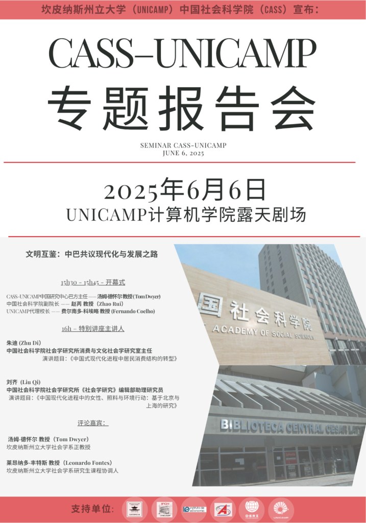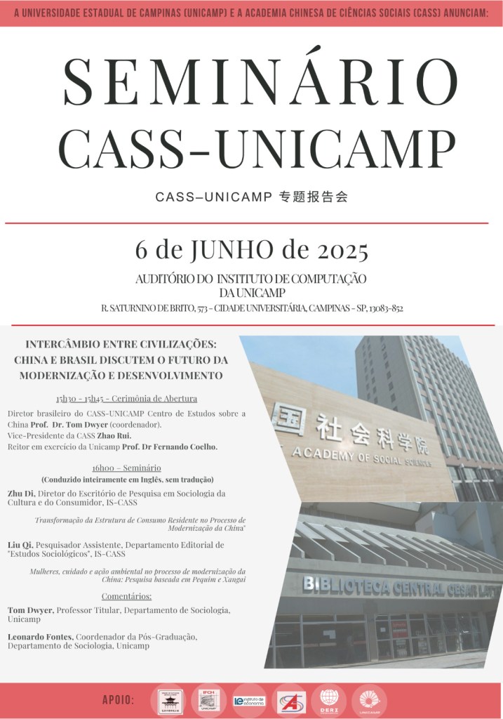 No dia 6 de junho de 2025, o Centro de Estudos sobre a China CASS–UNICAMP realizou o Seminário Internacional “Intercâmbio entre Civilizações: Modernização e Desenvolvimento na China e no Brasil”, em parceria com a Academia Chinesa de Ciências Sociais (CASS). O evento foi sediado no Auditório do Instituto de Computação da UNICAMP e reuniu autoridades e pesquisadores dos dois países.
